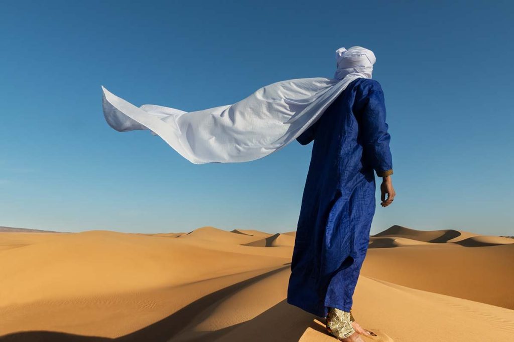 Precisamente en Merzouga tomaremos nuestros dromedarios (sustituibles por vehículos 4×4) y nos dirigiremos a las dunas de Erg Chebbi, emprendiendo una excursión diferente e inolvidable por este mar de fina arena dorada. Tras un par de horas de trayecto, llegaremos a nuestro campamento de jaimas en medio del desierto, donde nos estarán esperando con un té bereber, como manda la tradición local.