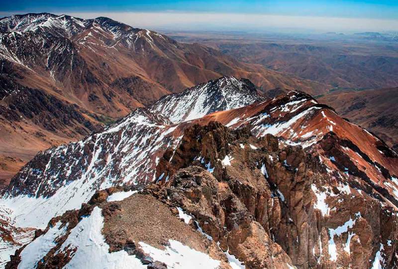 El Alto Atlas (cota máxima de 4.167 metros, con el Toubkal)